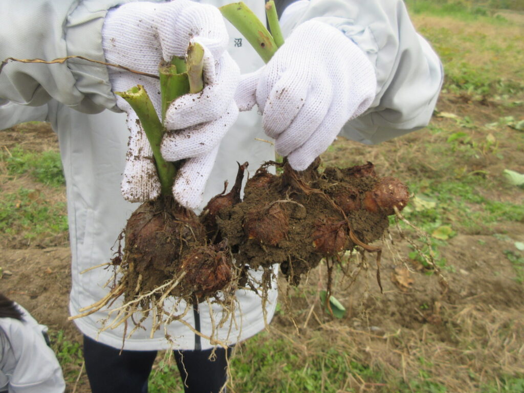 ひまわりタイム(収穫) 2025年11月13日 最終更新日時 : 2025年11月13日 kumagaya_edit 長寿クラブの皆様にご指導いただき、里芋の収穫を行いました。 冬眠中のバッタやカエルも見つけていました。 長寿クラブの皆様、畑の準備や管理、本日のご指導ありがとうございました。