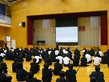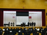 今日の大里中 2026年4月30日 最終更新日時 : 2026年4月30日 kumagaya_edit 人権朝会、前期学級委員任命式を行いました。写真は、(左)生徒会長人権メッセージ (中)人権校長講話 (右)前期学級委員任命式 です。