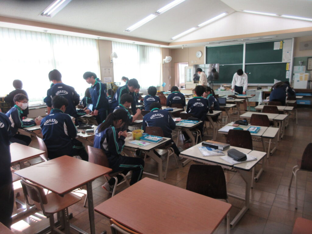 11/27(木)今日の大里中 2025年11月27日 最終更新日時 : 2025年11月27日 kumagaya_edit 今日の授業(一部) 1年 【社会】国風文化 2年 【国語】論語 【理科】プリント学習 3年 【数学】テスト返し 【美術】木彫