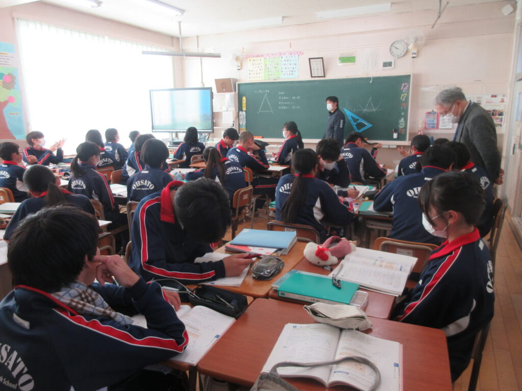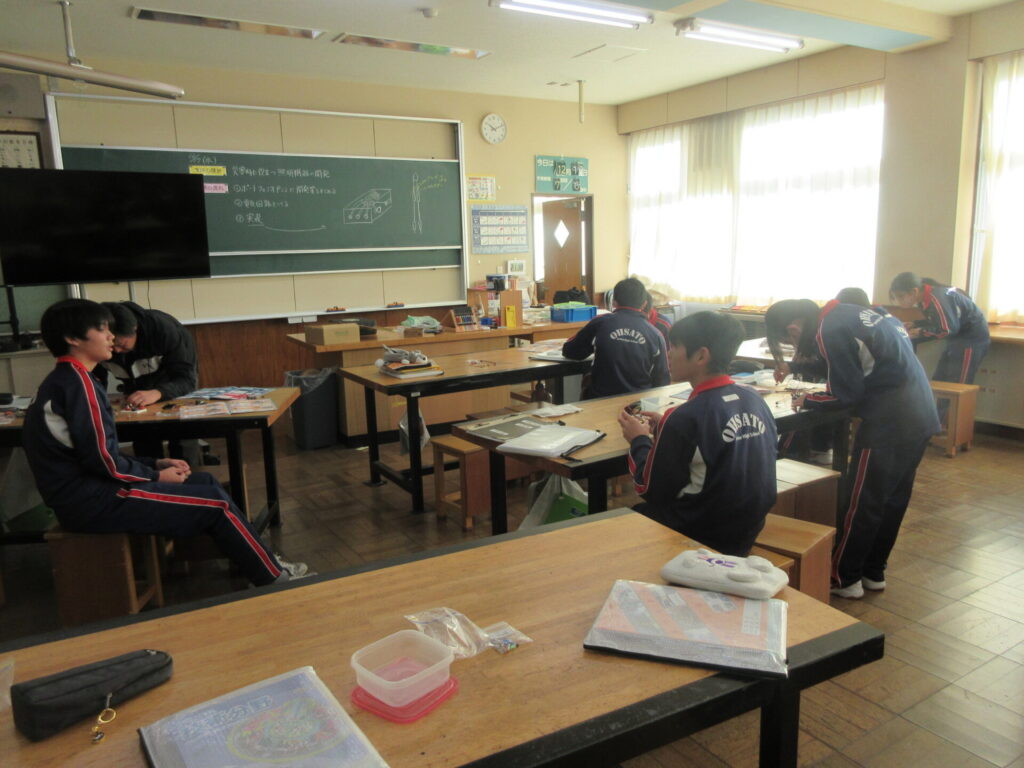 2年 【家庭科】伝統的な住まい 【数学】二等辺三角形 【技術】災害時に役立つ証明の開発