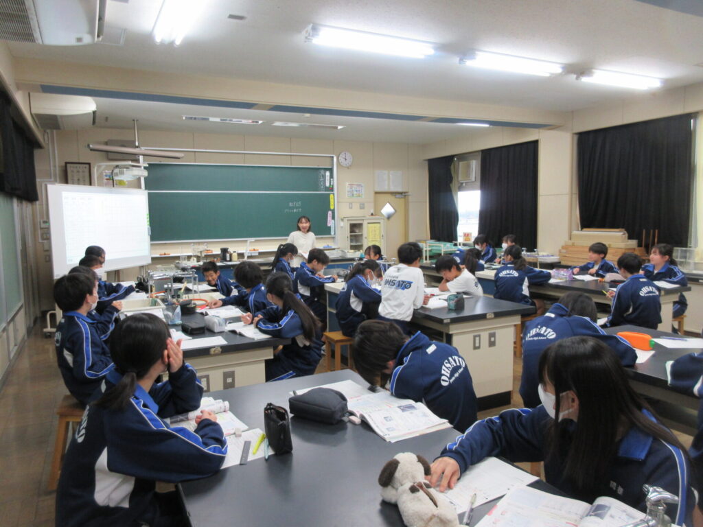 1年【数学】比例・反比例の利用 【英語】Unit7 The New Year in Japan 【美術】紙粘土 ※みかんの写真は先生の作ったお手本です 【理科】状態変化