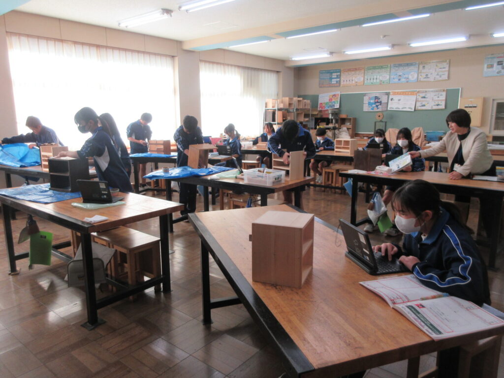 1年 【家庭科】魚をおいしく食べるには 【国語】書初め 【技術】木材加工 【理科】混合物の分離