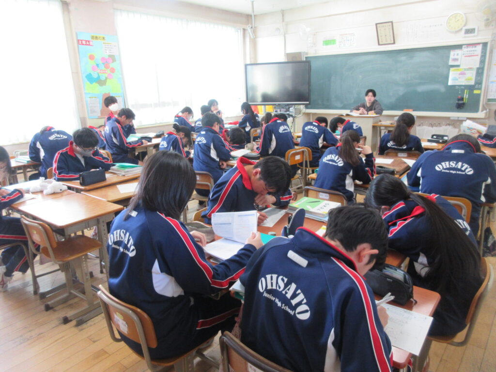 2/12(木)今日の大里中 2026年2月12日 最終更新日時 : 2026年2月12日 kumagaya_edit 今日の授業(一部) 1年 【国語】熟語の構成 2年 【英語】友達にインタビュー 【数学】プリント学習 3年 【社会】太平洋戦争 【国語】故郷