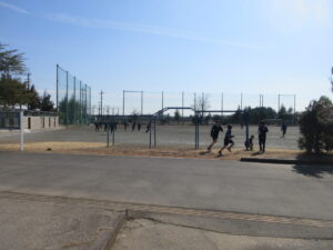 今日は穏やかな一日で、昼休みには生徒が校庭でサッカー、キャッチボール、鬼ごっこなどをしていました。