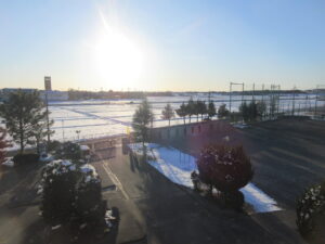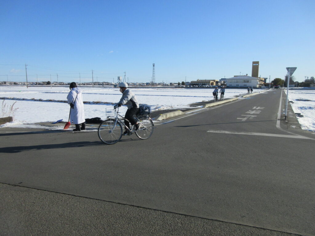 昨日の雪が残る朝でしたが、生徒たちは安全に登校できました。