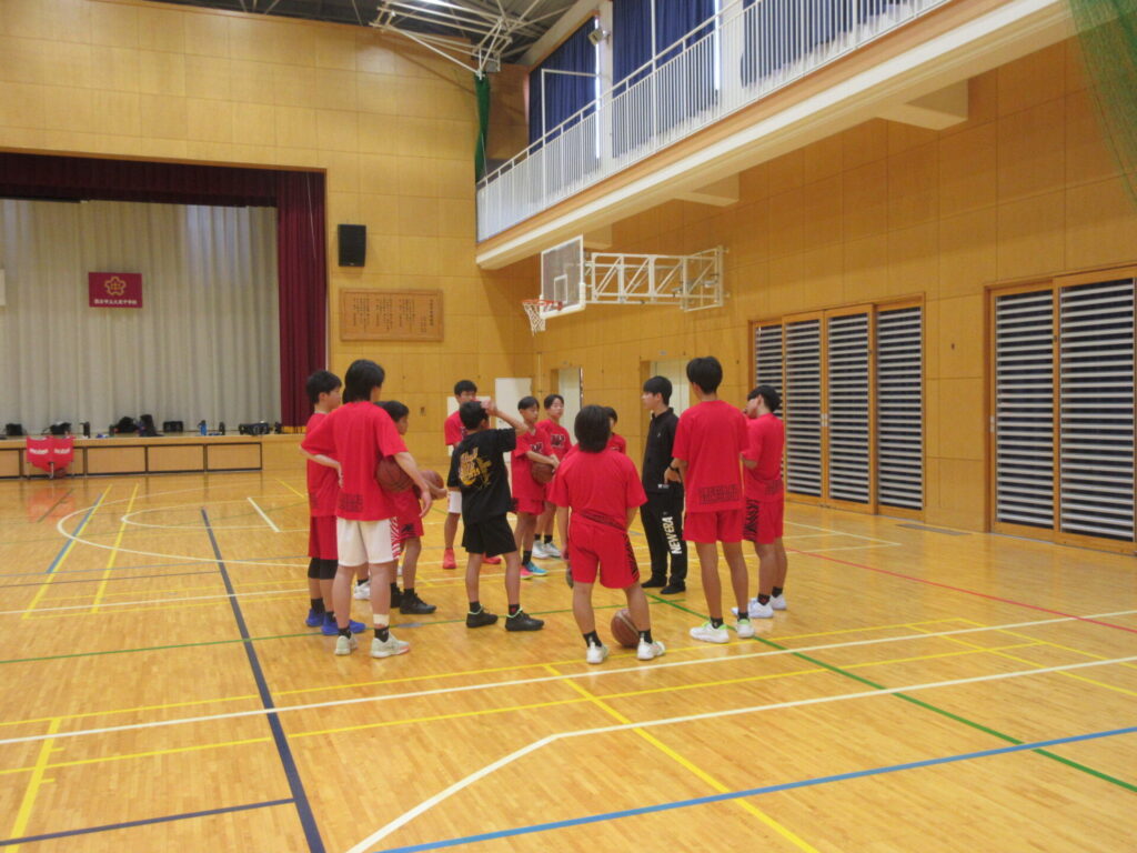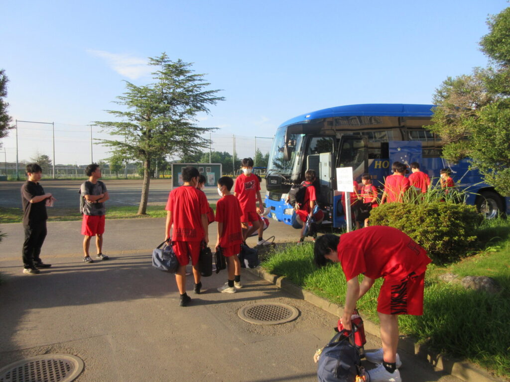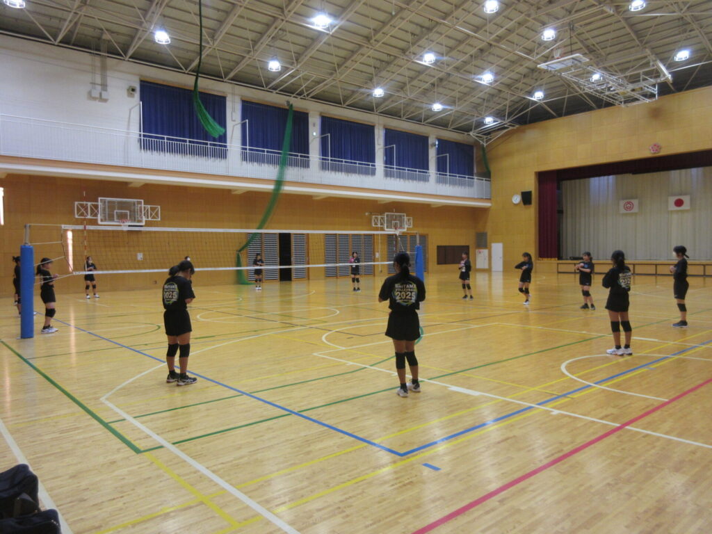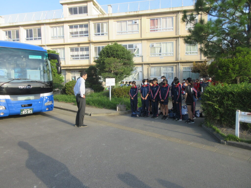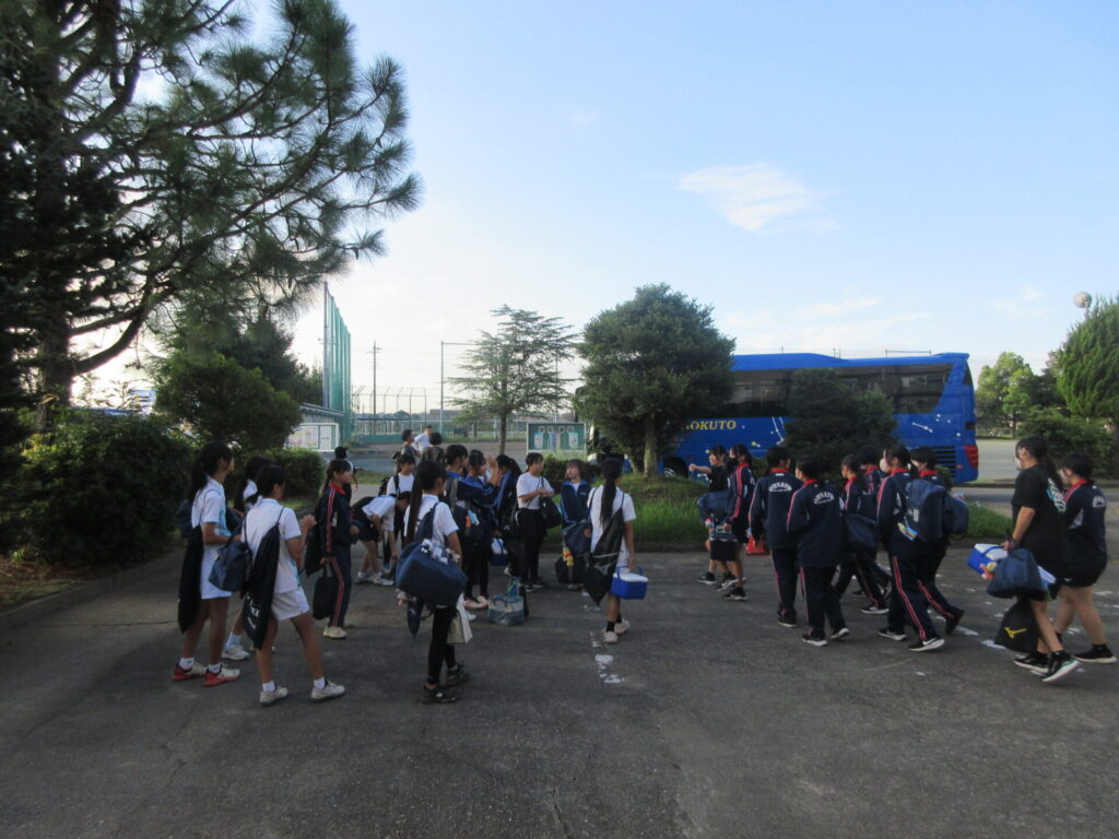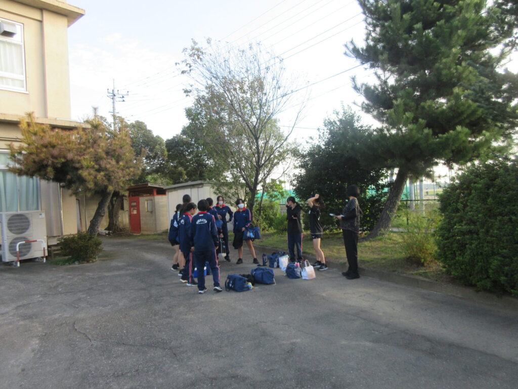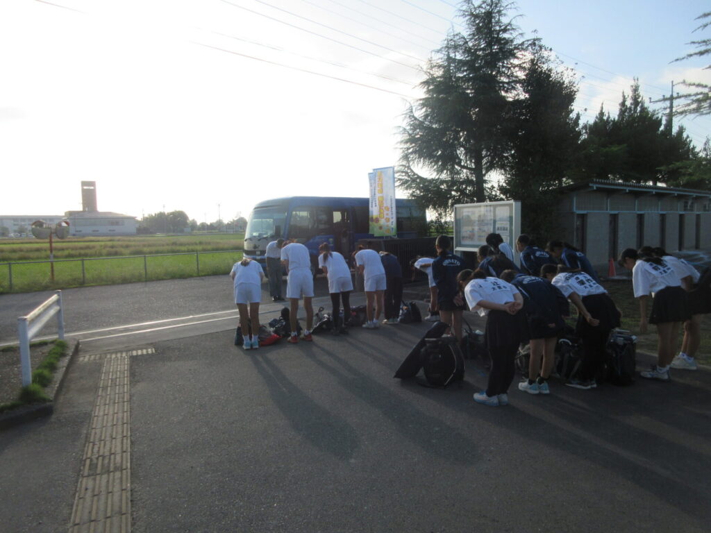 男子バスケ部、テニス部、バレー部が練習を行い、会場に出発しました。
