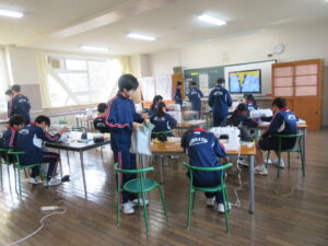 今日の授業(一部) 1年 【国語】蜘蛛の糸 【理科】水に溶けた物質を取り出す 2年 【国語】紙の建築 【英語】接続詞の復習 3年 【音楽】狂言と組踊 【理科】浮力の実験